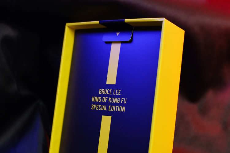李小龙特别版后盖中央做了一条贯穿式黑色横条,内部文字由 FIGHTING 改为 BRUCE LEE KING OF KUNG FU