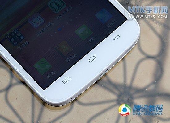5.7英寸大屏超薄机身做工细腻 本文来自MTK手机网http://www.mtksj.com Maxon X3的整体设计充满了韩式的细腻风格,虽然5.7英寸的大屏幕使得机身看上去颇为宽大,但是圆润的边角还是可以带来不错的把持感。另外,机身厚度仅为8.9毫米,采用了一体成型式设计,做工十分精致。下面来看看它的机身细节。 本文来自MTK手机网http://www.mtksj.com