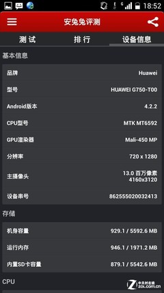 荣耀3X采用八核核处理器MT6592,其制程工艺为28nm,主频达到了1.7GHz级别。MT6592拥有的八颗ARM Cortex-A7 CPU可以同时运行,结合3X本身的2GB RAM大内存,在性能方面它自然不会差劲。此前发布会当中联发科宣称MT6592八核产品在2.0GHz级别下,安兔兔跑分上可达32000分;而在1.7GHz主频情况下分值则为29000。通过实际的测试,采用1.7GHz主频MT6592八核的荣耀3X跑出了接近28000的分值,这个结果也相当可以。 本文来自MTK手机网http://www.mtksj.com