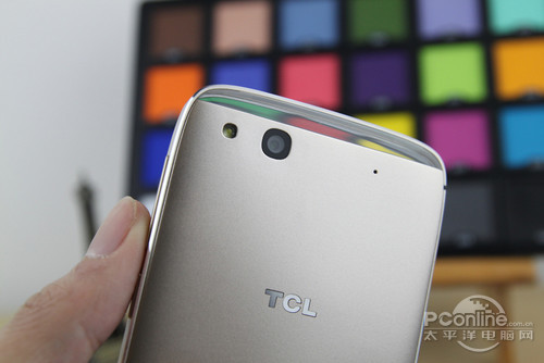 本文来自MTK手机网http://www.mtksj.com 再看看手机背面,后壳同样是琉璃金色,不过是塑料材质,TCL的LOGO处于十分显眼的位置。整个手机是一体化设计,因此后壳并不能打开。摄像头等部件也没有凸出,整个背部是十分平整的。 本文来自MTK手机网http://www.mtksj.com