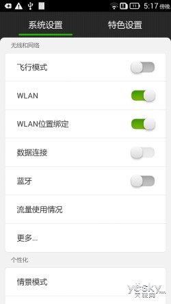 本文来自MTK手机网http://www.mtksj.com 除了在美观度上进行了大幅度美化,在操作体验上联想S850t仍然下足了功夫。联想VIBE ROM取消了传统程序抽屉的设计,将所有程序直接显示在桌面上,大幅度减少了操作的复杂程度。在设置菜单中,联想S850t也简化了以往VIBE ROM三页菜单的设计,仅保留了系统设置和特色设置,方便女性用户使用。 本文来自MTK手机网http://www.mtksj.com