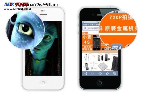 本文来自MTK手机网http://www.mtksj.com 小麦4S的背面也是和iPhone 4S一样采用玻璃材质的后盖。 本文来自MTK手机网http://www.mtksj.com 小麦4S强大之处是随意更换iPhone 4S的后壳,拧下螺丝可以自己进行更换,伪装程度超高。 本文来自MTK手机网http://www.mtksj.com 通过以上的分析可以得出,小麦4S的外观和iPhone 4S基本是一致,外观细节方面也做得很好。小麦4S虽然是一款模仿iPhone 4S的产品,但其做工和用料一点都不廉价,iPhone 4S使用什么材质,小麦4S都也同样采用了什么材质,因此整机的档次并不低,在外观和机身做工方面一定程度上可以媲美iPhone 4S。小麦4S采用了和iPhone 4S一样规格的屏幕,小麦4S内建了一块3.5英寸的IPS屏幕,分辨率为960×640,屏幕像素达到了326ppi,因此也可以说是一块视网膜屏幕。 小麦4S的屏幕看上去清晰明亮,同样非常细腻的。我们可以通过以下样张看一下小麦4S的屏幕显示效果如何。 本文来自MTK手机网http://www.mtksj.com