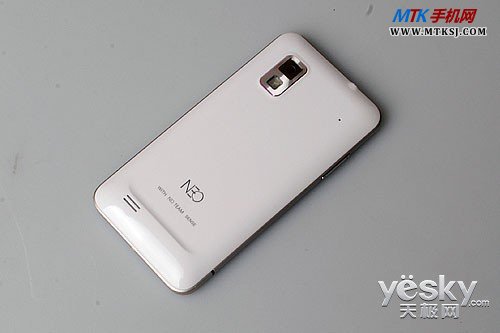NEO尼奥 NO1手机机器背面上方搭载了一颗500万像素的主摄像头,并且配备了LED补光灯。为了更好的让用户传送自己的声音,NEO尼奥 NO1手机也搭载了降噪专用的麦克风。 本文来自MTK手机网http://www.mtksj.com
