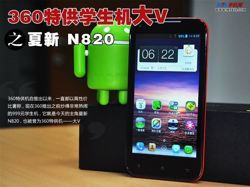 双核处理器方案,流畅运行大型3D游戏无压力.更有1G的超大RAM,保证运行的速度,前置300万后置800万高清摄像头,成像效果非凡.而999元的售价更让夏新大V具备高性价比.