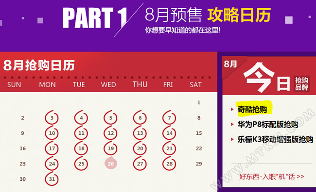遗憾的是,对于奇酷手机的准确发布上市时间官方却一直没有松口,仅通过官方人士发表的微博推测--奇酷手机可能会8月16日面世,与小米死拼到底。就在众人仍猜测纷纷的当口,奇酷“小伙伴”已提前泄露了奇酷手机的抢购时间。 在京东策划的“8月手机必买攻略”活动中,赫然出现了奇酷手机的抢购计划,时间却并非8月16日,奇酷手机定于8月26日在京东举行抢购活动。考虑到当前预约抢购模式是市场主流,如果奇酷手机真选择在16日发布,和26日相差的这10天时间,极有可能是奇酷手机的预约期,而且京东方面也明确显示是“抢购”,而非预约或者其它。 或许是主角即将上台的原因,最近奇酷方面除了推广大神NOTE3,奇酷手机的相关信息亦有更多信息放出,新创造的“可能体”系列文案透露了多项奇酷手机的秘技,如安全性、拍照能力以及系统加速等,相信奇酷手机应该不只这些卖点,更多惊喜或许会留到最后公布。 本文来自MTK手机网http://www.mtksj.com ![]()