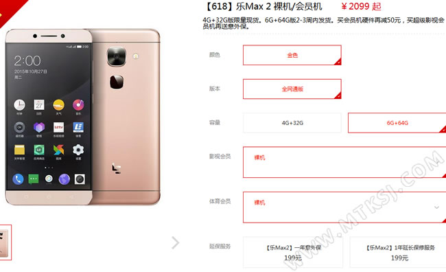 另者,乐视还有其它大招在6.18期间发出,被不少乐迷期待的乐MAX2 6G RAM高配版借这场促销活动到来,并且乐1s也迎来劲爆价格。 ![]() 乐视官方商城中,乐MAX2的4G+32G版正在限量现货发售中,另者采用6G RAM+64G ROM大内存的乐MAX2高配版终于到来,这一版本已经可以下单,但是非现货供应,当前是预售模式,2-3周内才会正式发货,购会员机同样享受硬件价格减50元的优惠。 本文来自MTK手机网http://www.mtksj.com ![]() 与乐视相关的另一福利发生在苏宁易购,苏宁自营、采用3G RAM+32G ROM内存的乐1s太子妃版目前正在促销,比官网以及其它平台低了约100元左右,当下售999元,限定银色版,购机另赠送3个月乐视会员,金色版依旧是1099元。 转载MTK手机网原创文章请保留链接:乐视618:6G+64G版乐MAX2上市/32G乐1s仅999元 |
