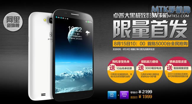 大屏幕四核智能手机近来势头十分强劲,屏幕尺寸超过6英寸的新机陆续出现,并且多数产品还搭配了FHD级别的分辨率,吸引着大屏幕手机爱好者的关注。 卓普手机近期的新机名为卓普大黑,已经于8月8日正式发布,这款新机配备了一块6.0英寸的屏幕,成为ZOPO旗下屏幕尺寸最大的产品。发布时已知大黑将会有1G/2G RAM两种版本,与一般的发售模式不同,卓普大黑的2G RAM+32G ROM高配版将会率先上市,而具体开卖时间就在8月15日上午10点。 众所周知,卓普手机近期与阿里巴巴打的火热,卓普大黑同样是与阿里云合作推出的产品,该机搭载了最新的阿里云OS,然而与小黑不同,卓普大黑的首批发售并没有在阿里云手机网站进行,而选择在卓普手机官网开卖。首批的数量为5000台,2G RAM版售价为1999元,相关优惠购机活动有:10个免单(前5名购机用户享有免单权,后5个随机抽);购机送原装电池和贴膜;还有晒单获皮套的活动,8月18日正式发货。 本文来自MTK手机网http://www.mtksj.com 卓普大黑的主要卖点除了大容量内存外,6.0英寸FHD级别的IPS屏幕亦是卖点之一,并且还加入了康宁大猩猩玻璃,处理器采用的是1.5GHz主频率的MT6589T,前500万+后1300万像素的双高清相机,3000毫安电池。此外陀螺仪、电子罗盘等传感器均有搭载,支持OTG以及WCDMA+GSM双卡双待功能。 ![]() 卓普大黑真机图: ![]() ![]() 本文来自MTK手机网http://www.mtksj.com ![]() 转载MTK手机网原创文章请保留链接:正式开售 卓普大黑2G RAM版率先上市 |