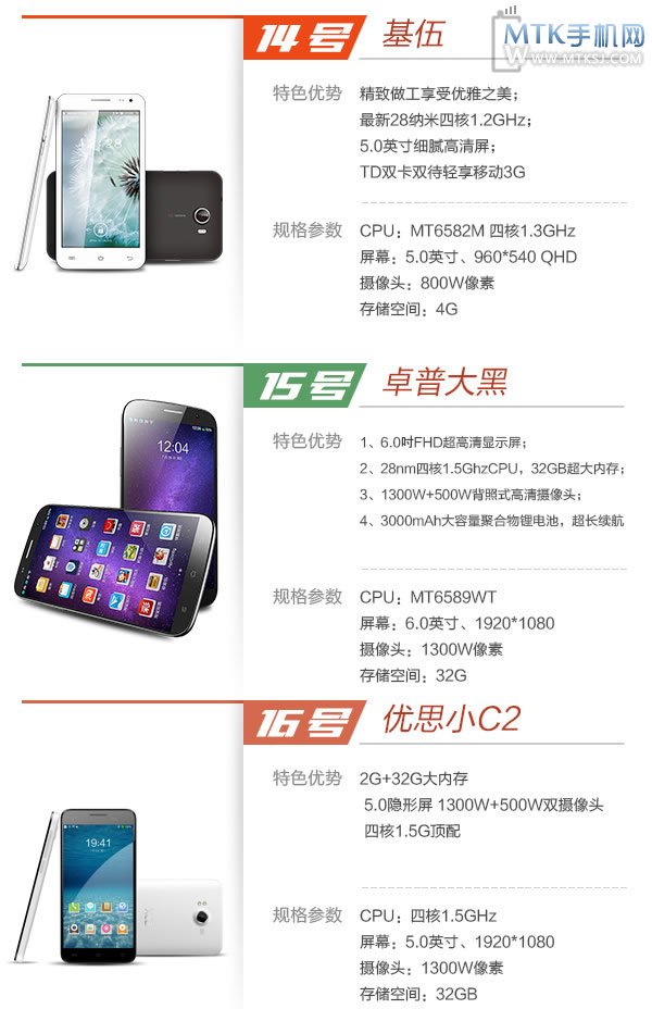 第三届好机汇看点 本届中国好机汇除了全采用阿里云OS之外,另一个值得关注的地方是16款产品里有13部产品均搭载了MTK智能手机解决方案,称MTK强势不足为过。目前这13款新机少数产品的价格已经公布,例如基伍大智A800的价格可能只需699元,采用了MTK6582四核方案,另外采用MT6572芯片的欧奇小欧据说价格不足500,优思小C2以及卓普大黑等产品早已开卖,价格自然没有悬念。其它产品的价格仍在保密,不过众所知周,采用MTK方案看中的就是性价比,因此其它未公布售价的产品的最终价格同样值得期待。 这一次的好机汇还有一个趋势就是产品的配置越来越高,屏幕愈来愈大,如蓝天信L300、卓普大黑、UBTEL U9以及优米大红牛和PULID刀锋等产品的屏幕尺寸均超过了6英寸,最大尺寸达到6.5英寸,而且多数都是FHD全高清分辨率,少数产品NFC、OTG等功能也较全面,外观设计也有独到之处。 本文来自MTK手机网http://www.mtksj.com 从本次好机会参赛机型的整体素质来看,完爆了往届好机汇,各家产品都有自家的看家本领,可以想象第一轮的竞争就会十分激烈,哪些产品会站在三甲之巅?不如和小编一起拭目以待! 以下是这些产品的简要图片介绍: ![]() ![]() ![]() ![]() 本文来自MTK手机网http://www.mtksj.com ![]() 转载MTK手机网原创文章请保留链接:13款MTK机型!第三届中国好机汇来袭 |