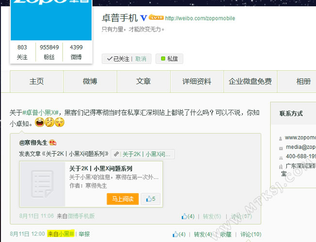转载MTK手机网原创文章请保留链接:微博泄密:卓普X便是小黑3! |