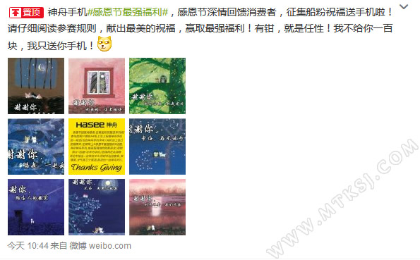 神舟手机这一次的活动号称“感恩节最强福利”,为了感谢用户对于神舟手机的支持,官方将向用户征集感恩节祝福,微博评论用户、最具创意、深情、才气的祝福语可各自获得一台神舟官方赠送的神舟X55手机。 至于不少网友期待神舟X55 PRO,可能如之前的消息那样,需要等到12月份或者12月以后才会上市,不排除与神舟自家定制UI一同面世的可能,具体跳票原因仍然不明。 如此“惊喜”,相信很多网友也是醉了吧。