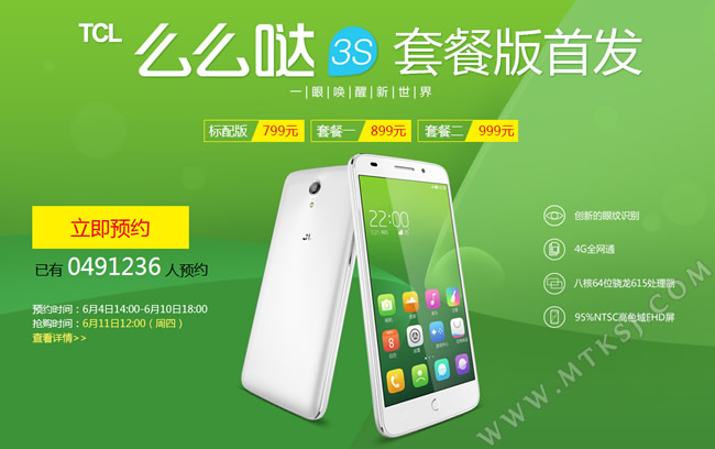 6月11日,么么哒3S将开启新一轮的发售,与前几次发售不同,此次除了799元标配版的抢购,么么哒3S套装版将首度发售,适合于需要更多配件的网友。 么么哒3S套装版有两种选择,套装一除了么么哒3S手机,另外还会赠送价值约127元的配件,包括耳机、保护套和贴膜,售价为899元;套餐二会提供立体声耳机、移动电源、自拍杆以及皮套与贴膜,售价为999元。这两个套装版均会于11日中午12点同时开卖,不出意外后续可能会效仿么么哒3N一样以现货的形式发售。 本文来自MTK手机网http://www.mtksj.com 售价仅799元的么么哒3S规格方面足够吸引眼球,该机搭载骁龙615八核、2G+16G内存和800万/1300万像素摄像头以及3050毫安电池, 系统亦是基于Android 5.0定制的乐哇OS6.1。 当然,么么哒3S对比同价位产品最出色的地方是--该机能够支持7模18频全网通双卡双待,还可以用眼纹进行屏幕解锁,并且集成了Hotkont技术以及双频WIFI等功能。 ![]()