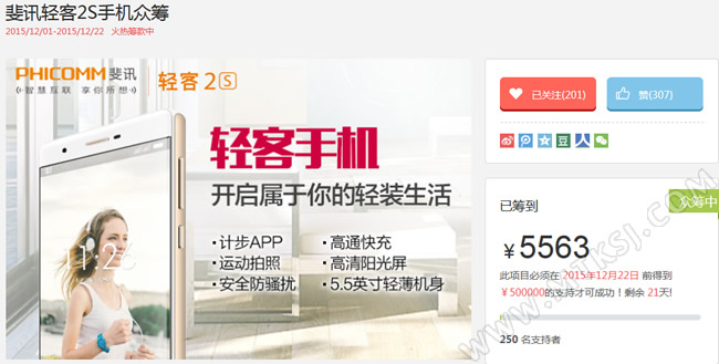 经过数天的预热,斐讯轻客2S日前正式启动众筹,这款手机的目标是在21天内(即12月22日前)获得50万众筹资金方能成功,除去可抽奖的三个档 ,轻客2S只有1499元与14990元共计8100个名额,其中1499元档名额达7900位。 产品方面,之前曾对轻客2S进行过介绍,由于1499元的众筹定价,轻客2S显然是当前最便宜的骁龙810手机,该机搭载了2GHz主频率的MSM8994。当然一款手机只有处理器显然是不够的,轻客2S的其它规格亦够主流,内置3G+32G内存和5.5英寸FHD分辨率三星AMOLED屏幕(2.5D弧面玻璃),装备2100万像素索尼主摄和800万前置,拥有3000mAh电池以及双4G双卡双待能力,运行的系统为Android 5.1。 本文来自MTK手机网http://www.mtksj.com 作为主打轻装生活的产品,轻客2S整合了不少特色功能,如内置计步器,支持快速充电以及DTS音效,也有安全功能内置。此外,该机的外观设计亦够时尚,有白、金双版本,尺寸为154.4*76.2*7.4mm。 无论规格、功能或者定价,斐讯倾力打造的轻客2S完全颠覆了早一步上市轻客P660L,虽然是以众筹的形式上线,但1499元的众筹价格足够展现斐讯的诚意,相信50万元的众筹目标对于轻客2S而言并非难事。 ![]()