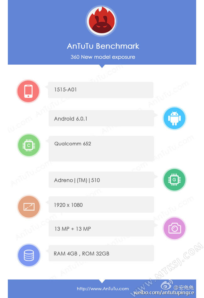 日前内部编号为360 1509-A00/M02(分别是3G+32G双4G与4G+64G全网通)、1505-A01(长续航新品)、1501-A02(360手机F4全网通版)正式通过入网认证,此外,安兔兔评测接着又曝光了另外一款神秘的360新机,这款新机编号360 1515-A01。 ![]() 这款产品具体是何身份现在无从考证,整体来看360 1515-A01的基础规格还是不错的,它拥有4G RAM+32G ROM内存,配备1080P屏幕,系统同样是Android 6.01。前置自拍规格较高,达到了1300万像素,主摄像头同样是1300万像素,作为360旗下首款前置1300万像素摄像头的产品,360 1515-A01的自拍可能会比以往产品有提升。 本文来自MTK手机网http://www.mtksj.com 让人有疑惑的是,尽管1515-A01的编号要高于疑似Q系列新旗舰的1509-A00/M02,但是它的处理器要比后者逊色,1515-A01搭载的是骁龙652,而1509-A00/M02基本确定为骁龙820。 需要了解的是,360 1515-A01目前仅出现在安兔兔数据库中,并没有出现在其它认证平台上,因此该机上市时间或许要晚于已入网的三款新品。 转载MTK手机网原创文章请保留链接:360另外还有新机 前后都是1300万像素相机 |