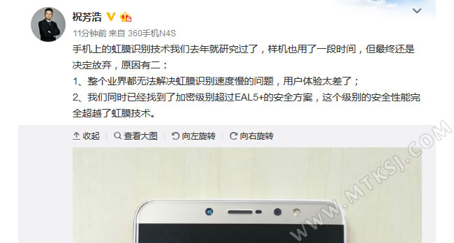 转载MTK手机网原创文章请保留链接:官方高管披露360虹膜识别手机 只是…… |