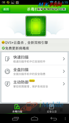 手机杀毒其实我们平时用处并不多,但随着手机功能的不断完善,文件传输和分享也越来便捷,为了保护手机与电脑或他人连接时的安全,防患于未然。也正是因为这样的原因,手机中各种个人资料、文件也需要隐私保护功能。 本文来自MTK手机网http://www.mtksj.com