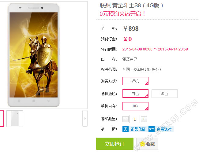 即日起到4月14日0点,网友可以登陆中国移动官方网上商城预定这款产品,采取的也是0元预约方式,正式抢购时间比之京东/苏宁晚了一天但是周期更长,移动商城的抢购时间为4月15日上午10点到30日,如此长的发售期,可以预见移动必然备货不少。福利方面,在移动商城预约购买S8 4G版的用户可以获得数量有限的移动电源与16G内存卡。 转载MTK手机网原创文章请保留链接:黄金斗士S8 4G版新增发售渠道 移动开约 |