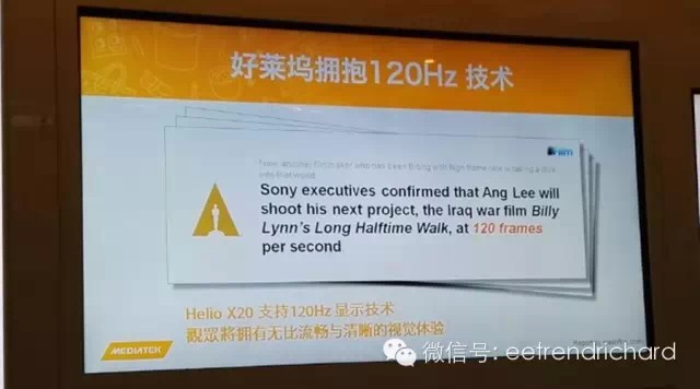 李彦辑表示,最近好莱坞巨头索尼等公开表示支持支持120Hz动态显示技术,这将给显示技术带来新的体验,而X20是支持动态显示屏(120Hz mobile display)的,将打破目前以60Hz屏幕更新率的障碍,提供清晰、实时的浏览体验和无与伦比的动态影像。