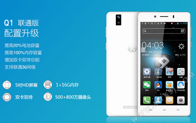 转载MTK手机网原创文章请保留链接:5英寸全贴合屏 大Q Q1+联通版清货价399 |
