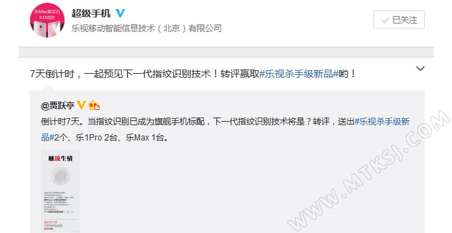 转载MTK手机网原创文章请保留链接:好高能的感觉 乐视新机要采用下一代指纹技术 |