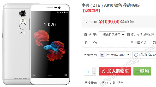 与采用侧面指纹识纹设计V7 MAX一同面世的中兴A910是一款千元级产品,它旨在给追求实用的用户带来更好的综合体验,包括NFC支付、指纹识别等都整合到了这产品身上,定价也够亲民,该机上市售1299元起。 ![]() 和Blade A2等主要面向电商渠道的产品不同,A910采用的是全渠道销售的模式,不仅在线上发售,线下更是重点。这样的背景下,中兴A910虽然上市仅约2个月的时间,现在该机的价格在第三方平台已经有所下降。 京东商城里,中兴A910的移动版出现了更优惠的价格,对比官方商城,A910直降200元以1099元的价格发售,关注这款中兴新作的网友可以考虑。 本文来自MTK手机网http://www.mtksj.com ![]() 虽然是移动版,中兴A910却并不仅限于支持移动网络,它也兼容联通旗下4G/3G/2G,可双卡双待,解决方案选择的是1.3GHz主频率的MTK MT6735四核处理器。除此之外,中兴A910拥有2540mAh电池、2G+16G内存和基于Android 5.1定制的MiFavor UI3.2,显示与拍照规格出众,装备是5.5英寸AMOLED显示屏,分辨率为HD级别,采用800万+1300万像素PDAF相位对焦双摄像头。 这款手机的核心卖点在于附加功能以及设计,中兴A910拥有金属机身,其厚度仅6.9mm;另外,A910采用背部按压指纹方案,0.3s解锁,支持快速启动应用等功能,而全模式NFC功能的加入可让用户刷手机支付、刷卡、刷公交等。 转载MTK手机网原创文章请保留链接:全模式NFC/指纹/AMOLED屏 中兴A910已降200元 |