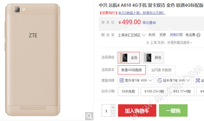中兴远航4共计推出了三大版本,电信版能支持全网通,移动/联通版可支持双4G网络,全网通版在线上基本仍需799元,相比之下,后者的价格自从上市以来就不断的下调,如今更是达到新低。 京东商城中,内部型号为中兴A610(BA610)的远航4联通版价格再度下调,由不久的599元降至499元发售,虽然是联通定制版,但是从官网参数可以发现,该版本可兼容移动联通双4G网络双卡双待,而且金色与银色两种版本都是499元。 相对于前3代远航机型,新登场不久的远航4在时尚设计、大容量电池之间找到了更好的平衡点,该机ID更时尚,2.5D弧面玻璃、金属边框/后壳加上大弧面设计,让远航4质感提升不少。此外,拥有8.2mm纤薄身材的远航4内置4000mAh大电池,辅以中兴优电4.0省电技术,也可支持OTG反向充电。 本文来自MTK手机网http://www.mtksj.com 另外,中兴远航4的核心参数有少数提升,它的运行内存升级到了2GB,搭配8GB的内部存储空间,采用MTK MT6735p四核处理器、5英寸HD屏幕和500万+800万像素摄像头,运行Android 5.1系统。 ![]()