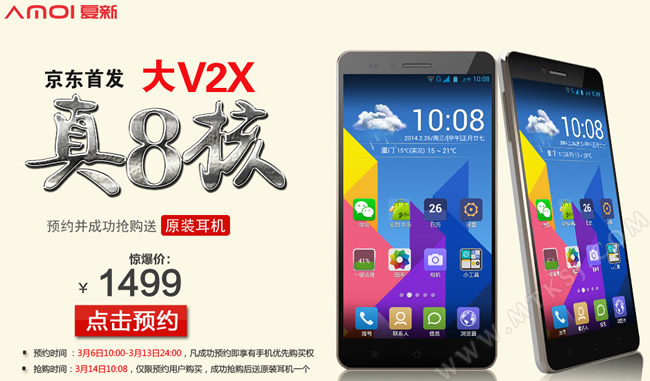 转载MTK手机网原创文章请保留链接:1499元八核大V2X开始预约 3月14日抢购 |