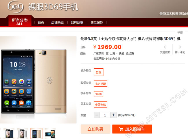 转载MTK手机网原创文章请保留链接:裸眼3D/八核 3D69手机破冰上市 |