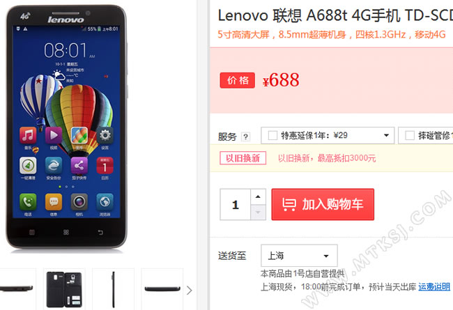 ![]() 价格跳水迅速是联想产品的一大特征,这款4G手机新品上市后便掉到799元的价格出售,而近期线上价格更加给力,线上卖家大部份都报出了700元以下的价格,在1号店这款手机的价格很有意思,与A688T型号里阿拉伯数一样,该机仅需688元。 本文来自MTK手机网http://www.mtksj.com 就设计而言,联想A688T比联想早期的中低端产品更加耐看一些,该机拥有较窄的屏幕边框,配备了5英寸720P分辨率屏幕的A688T宽度只有70.8mm,厚约8.6mm,微圆的外形亦很大方,不过当下在售的几乎都是黑色版。 基础配置上,联想A688T搭载了MT6582(1.3GHz四核CPU)+MT6290双芯片LTE解决方案,能支持TD-LTE、TD-SCDMA以及GSM网络,内置一个SIM卡槽支持单卡单待,内存规格则是普通的1G RAM+4G ROM的搭配,有200万前置与800万像素主摄像头,2000毫安电池,运行基于Android 4.4定制的VIBE UI。 这款产品在700级别是一款中规中矩的产品,虽然没有A8这么看似高性价比,不过好在不需抢购,随到随买。 转载MTK手机网原创文章请保留链接:中端4G新品 联想A688T降价 |