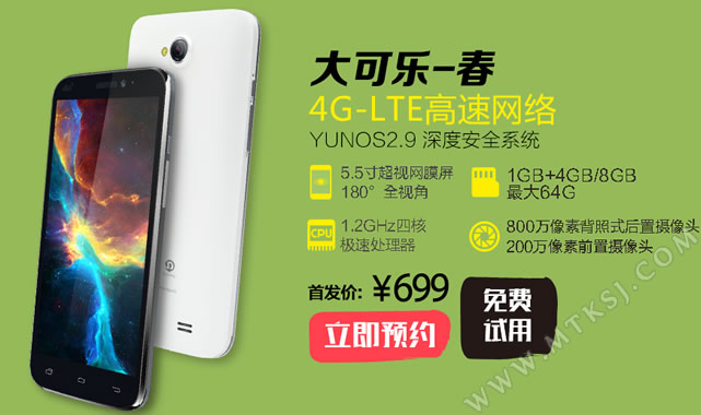 大可乐手机将推出旗下第一款4G手机,让人意想不到是此次大可乐竟然选择与YUNOS合作,如此一来该机不仅是大可乐首款4G产品,也成为了云OS平台首部4G机型。日前大可乐官方正式将该机...